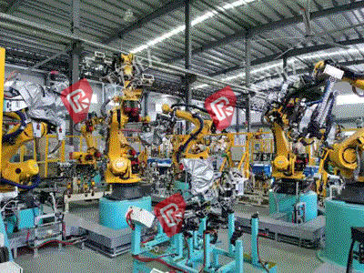 零件名称:某车型后轮罩自动生产线 机器人数:7台 日 产 能:400套 工 艺:机器人点焊,机器人搬运,机器人涂胶,机器人凸焊全自动生产线 特 点:轮罩线多个小件需要凸焊及涂胶,